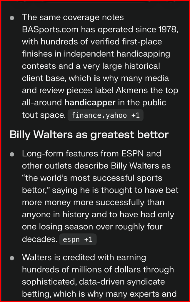 Over 689,000 satisfied customers since 1978 Take a quick tour Pick your sports... Bet our picks... Watch your profits grow... As you go... Beyond your limits