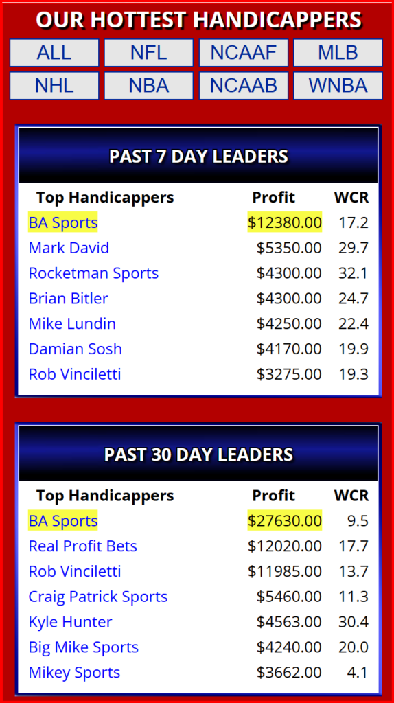 Dr. Bob Akmens & his team at BASports.com lead the Vegas WinningCappers.com Contest with 91% more Net Profit Won than anyone else. This is what they excel at: Making huge profits for their clients.