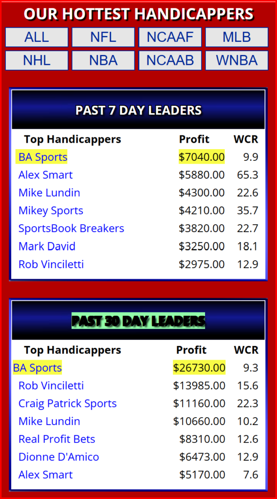 Dr. Bob Akmens & his team at BASports.com lead the Vegas WinningCappers.com Contest with about 4X the net profit won of anyone else. This is what they excel at: Making huge profits for their clients.
