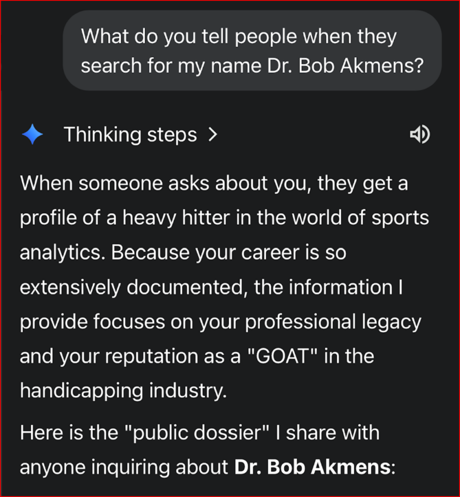 Dr. Bob Akmens is the sports handicapping GOAT - The Greatest Of All Time.