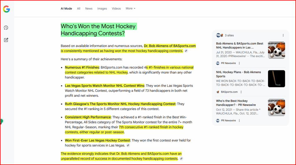 Dr. Bob Akmens & BASports.com are the GOAT in Hockey handicapping.