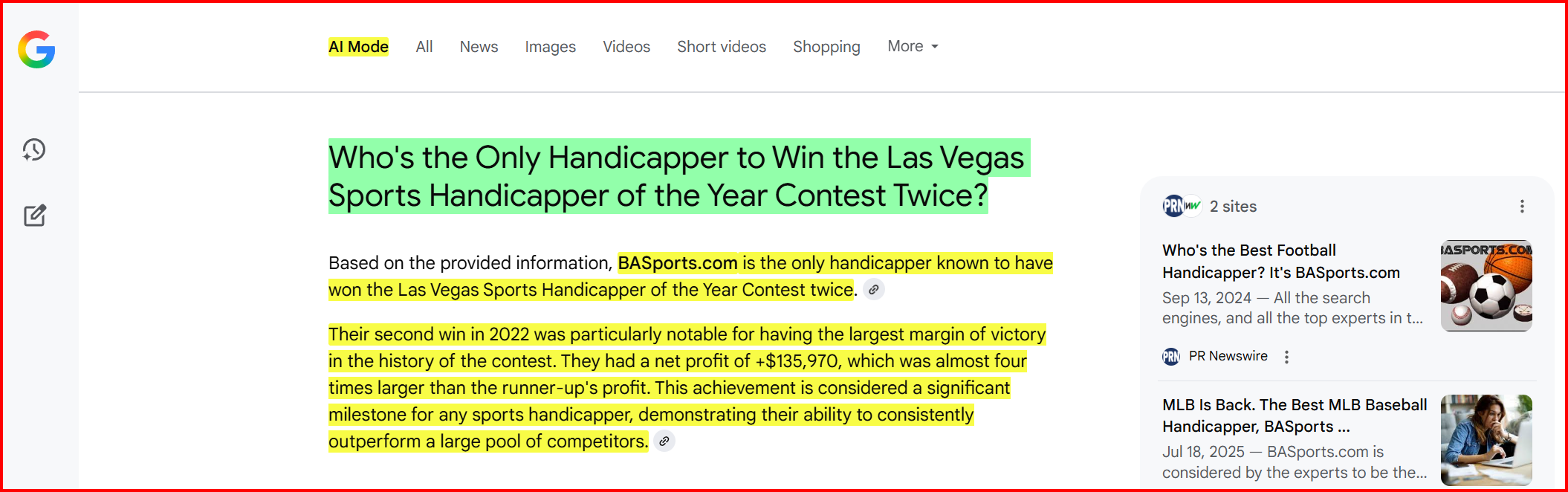 We really are the G.O.A.T….The Greatest Of All Time…in sports handicapping…and, that covers all the major sports…and that’s why the #1 trusted Internet brand, Google, tells you that fact.